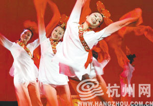 昨晚7时,此次大学生艺术展演表演类比赛闪亮登场。首场的舞蹈和声乐表演吸引了广大文艺爱好者前来观看。舞蹈首场比赛中,组委会特别邀请了来自北京舞蹈学院、上海戏剧学院等重量级的专家评审。浙江传媒学院师生原创的群舞《大爱》,以汶川大地震中发生的故事为原型进行编排,感人的情节,专业的表演赢得了在场观众久久不息的掌声。丽水学院选送的舞蹈《兄弟》,展现出了蒙古族特有的豪放与阳刚。另一边的音乐厅同时举行的声乐类首场比赛也是座无虚席。浙江大学选送的合唱《如梦令》仿佛又让观众听到了古时诗人在那浅唱低吟。