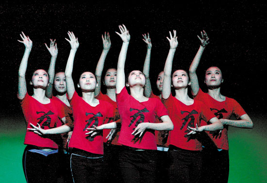 艺术职业学院的学生在昨天的新闻发布会前表演节目。本报记者 林云龙 摄