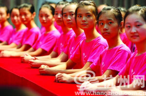 说起来,如今这一排苗子,可是浙江小百花越剧团团长茅威涛放下艺术家的架子,“像商人一样吆喝”过来报考,最后又从500个报名对象中挑出来的。