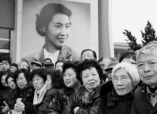 袁雪芬是浙江嵊州人,昨天很多家乡人也特地赶来送别。从绍兴赶来的戏迷俞先生排在队伍的最前列,他送来了自己写的一幅挽联。他说,袁老是一代大师,不仅将越剧发扬光大,还不遗余力地培养了一批又一批的学生。周燕和老姐妹一起从绍兴赶来,她们都是听着袁老的戏长大的。“雪声悠悠气韵端正千古绝唱,芬芳朵朵心血凝成一代丰碑”,对周燕来说,这对挽联是对袁老最好的悼念。