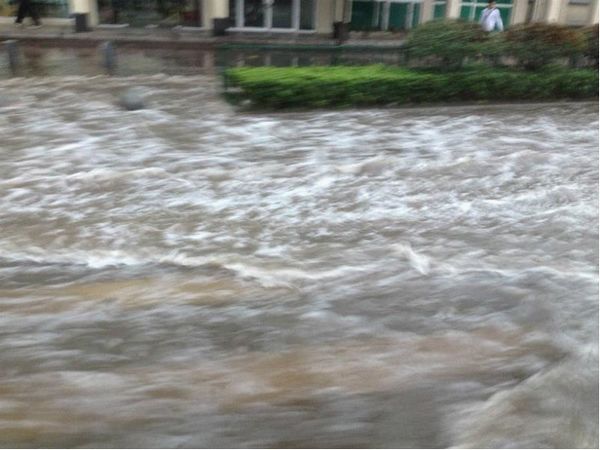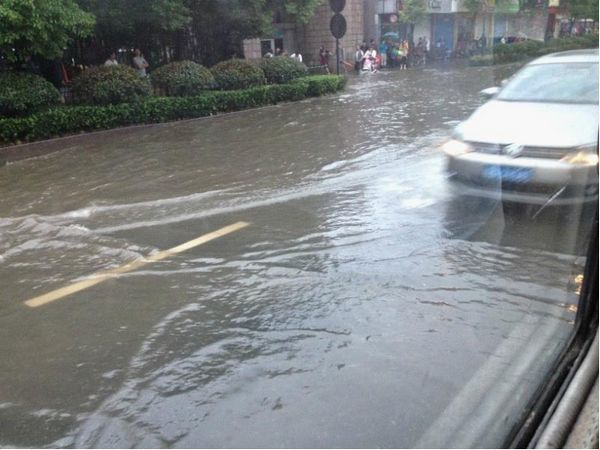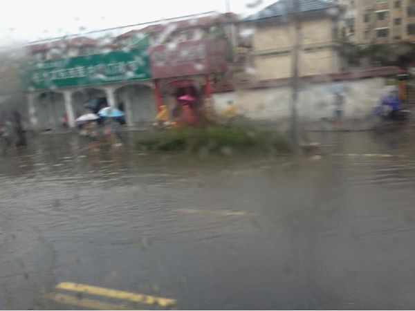 见此张图,有谁会相信这是条路,而不是条河呢?这都是台风干的好事,事实上也只有台风可以蛮不讲理地吼着说,路便是河,河就是路。