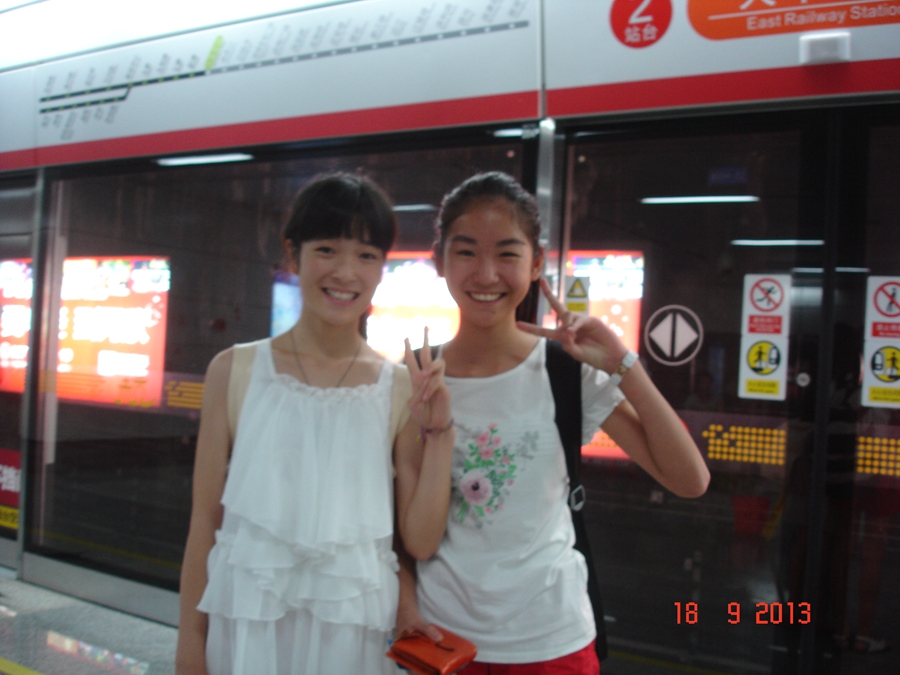 说着说着就到了东站,我们仨一起下车。这时候我想起今天的巧遇,想为她们拍张照片作个留念,于是拿出照相机请她俩在地铁上下车门旁拍了照片(见附),一起上自动扶梯后问了她俩的姓名得知:学大提琴的陈姿伊,学古筝的陈瑷瑶。随即挥手告别。