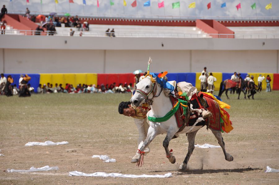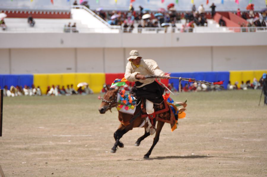 西藏所有民间传统节日中,几乎都少不了赛马。在古代以赛马和比武的方式选拔领袖是屡见不鲜的,因而赛马也就成为一种权力和力量的象征。藏区有许许多多的赛马节,其中那曲赛马节规模最为盛大。当然,现在赛马已经不具这样的意义了,反而是一种“重在参与”的体育精神———一展自我的力量与风采。同时,在区内外享有盛名的那曲“羌塘恰青赛马艺术节”不仅是西藏传统节日文化中一颗璀璨的明珠。现在更已然成为那曲地区进行对外开放、增强同外界交流与合作、促进那曲发展的纽带,它以传统的马术表演为主,融文艺活动、观光旅游、经贸洽谈、招商引资于一体。