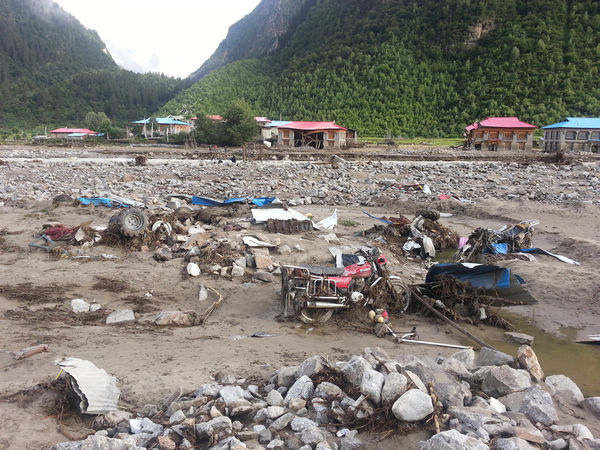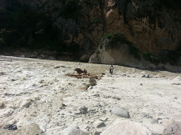 站在高处,一眼望去,尽是湍急的洪流呼啸而过。这洪流原是纯净的天上之水,却因为来得太急太猛烈,唤醒了藏域高原天然湖泊上游沉睡的冰川。冰川崩裂,滑入湖中,冲垮湖堤,河水暴涨,凶猛的河流就这样无情地肆虐。