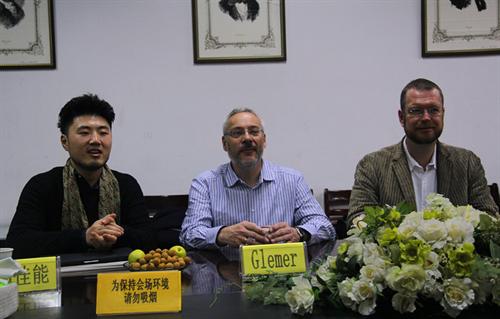 章轲简要介绍学院办学基本情况、办学特色,就音乐专业建设、音乐表演展开交流。Glemser教授和Hollop歌唱家分别讲述各自的艺术生涯、演出经历。