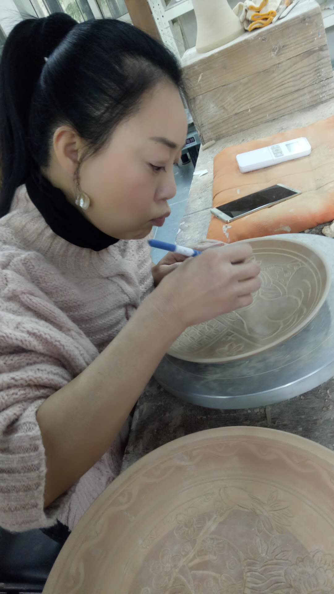 她是来自四川省油画院的专职画家,曾拜师于上海著名画家徐柯先生和四川省著名画家蔡寅坤门下,主攻意笔人物,她让荥经砂器从寻常百姓家步入大雅之堂。她就是中国黑砂文化专业委员会主任、中国书画家联谊会陶瓷艺术委员会联络处主任、荥经县政协委员:林萍。