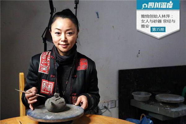 一个外来女子,就这样毅然留在了荥经。关于荥经砂器的一切,她都要从头开始学起,难度可想而知。林萍于2014年成立了“荥经林氏黑砂文化发展有限公司”,创立了“雅烧”黑砂品牌,并自封为“雅烧堂主”,成为荥经当地第一个外来的制陶女艺人。