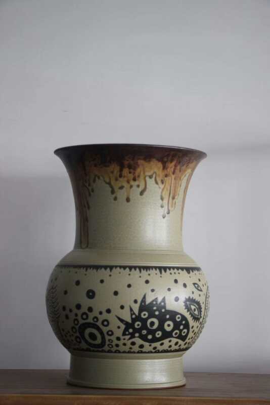 来自衢州龙游县的周小平是婺州窑的“粉丝”。他自幼随祖父学艺,从事黑陶烧制多年。一次偶然,周小平在电视上看到了陶艺培训的招生广告,怀着对瓷器制作的好奇,他报名了陶艺培训班,正是这一份好奇之下的尝试,叩开了他探索婺州窑陶瓷烧制技艺的大门,也让他从此迷上了婺州窑。