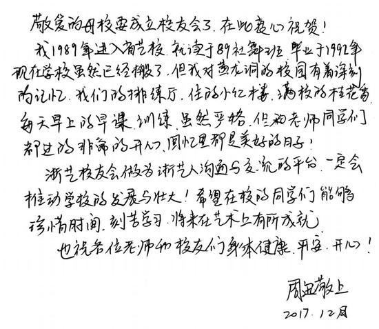 新浪浙江讯:周迅发来亲笔贺信董卿致贺 浙艺校友会成立