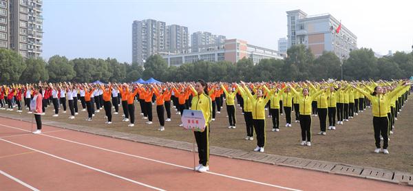 广播操比赛中,各系代表队身着不同色彩的服装,以铿锵有力的口号,准确到位的动作,精神饱满的姿态带来了一个精彩的开场秀。
