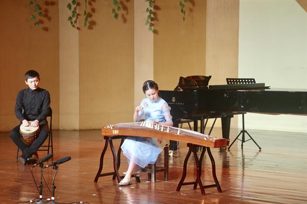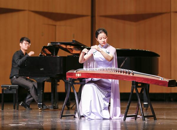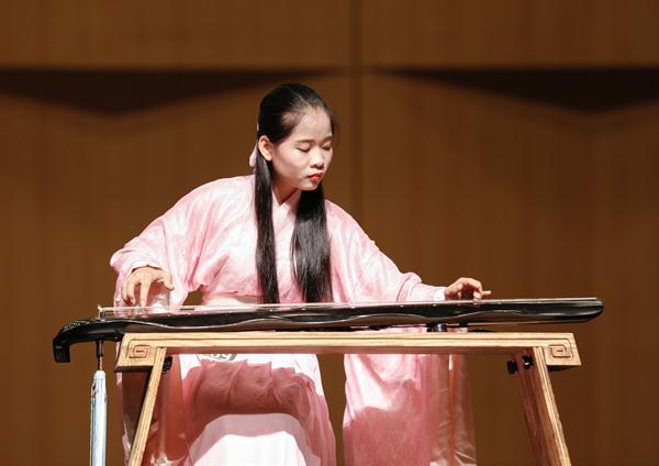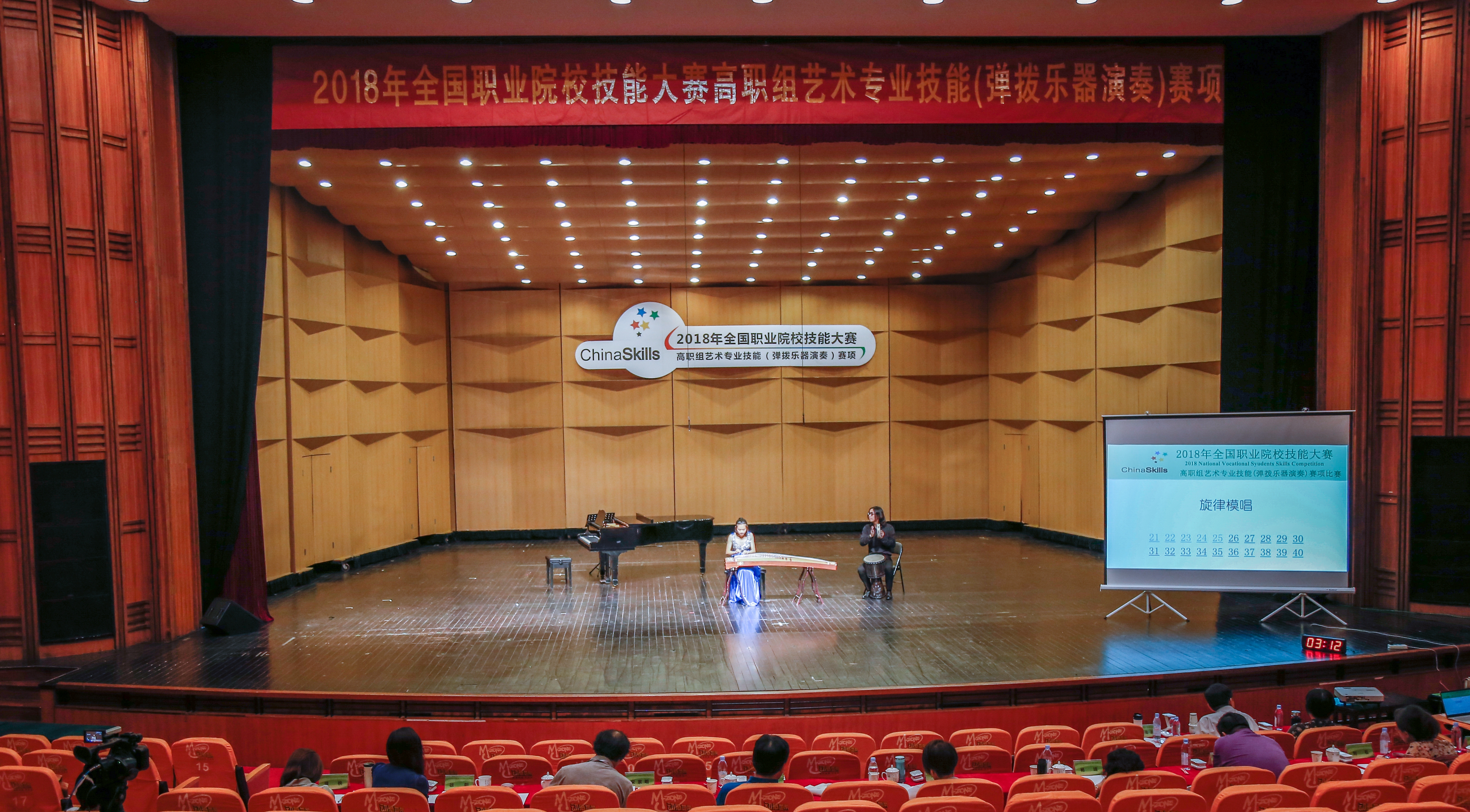弹拨乐器种类繁多,中华民族优秀传统文化通过各具地方特色的乐器一一在大赛舞台上得以展现。在高职组比赛现场,一曲曲风格迥异、摄人心魄的乐曲紧紧抓住了观众的心:用推、拉、吟、揉等技法刻画的琵琶独奏《花木兰》,合着颇具西域特色的手鼓奏出的筝曲《西域随想》,意境幽远古朴的古琴曲《流水》仿佛将观众带回了遥远的古代......