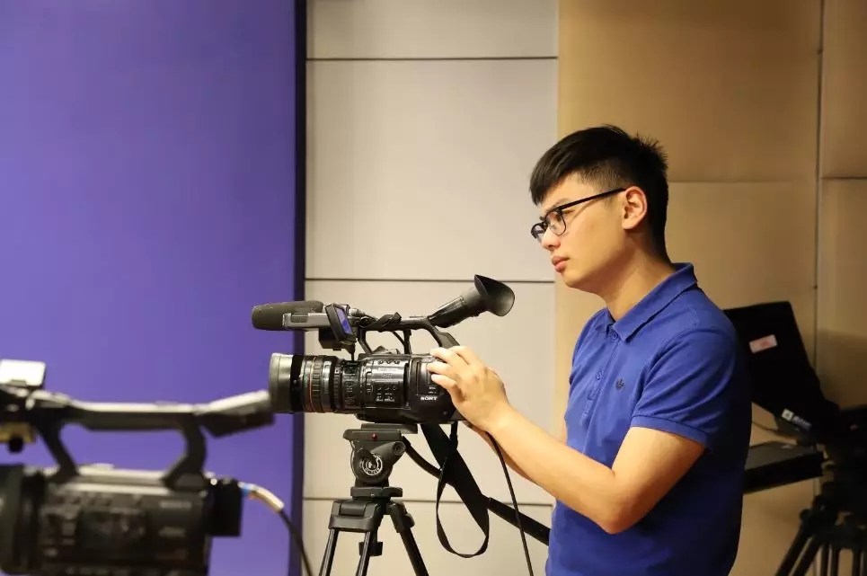 19日早上8点多,所有工作人员都来到直播现场进行最后测试。除了老师以外,影视技术系部分专业学生也承担了此次任务,摄影摄像专业与编导专业进行摄像,多媒体专业负责操作导播台和线路管理。