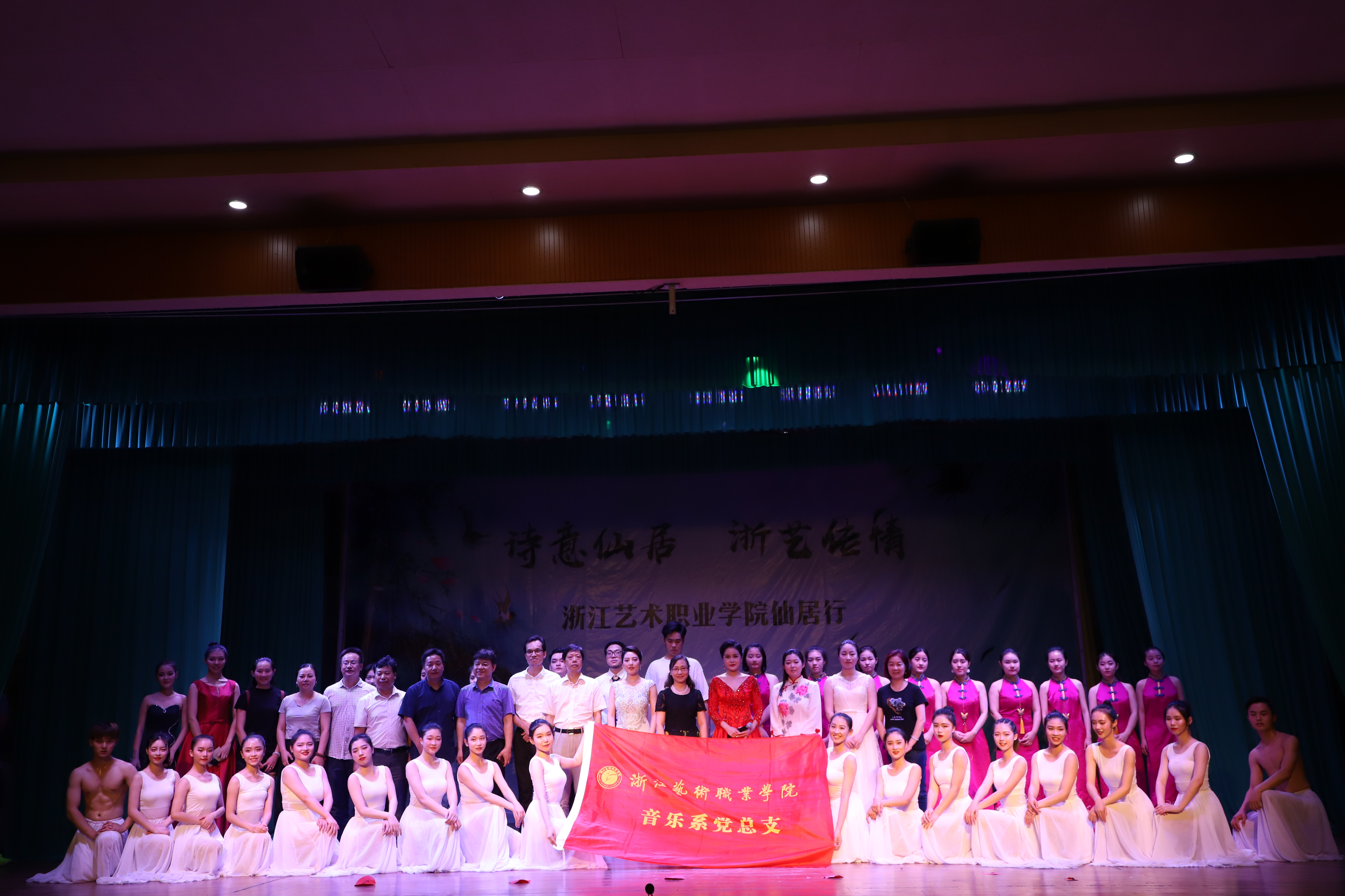 授牌仪式后,浙艺师生为当地群众作了精彩演出。由古筝、扬琴、中软、琵琶等民族传统乐器组成的弹拨乐重奏《鲁腔》拉开了晚会的序幕,笛子独奏《牧民新歌》富含田园气息,阿卡贝拉《小九妹》表演形式令村民们耳目一新,群舞《八女投江》演绎了革命烈士的英勇无畏,萨克斯独奏《此情不移》旋律悠扬,女声独唱《芦花》声声动人,《流行舞串烧》和群舞《不想说再见》青春洋溢,古筝独奏《西部主题畅想曲》仿佛将观众带回了古时的西域,演出在女声独唱《中国进入新时代》中落下了帷幕。整台节目丰富多彩,村民们赞叹不已,更有村民说:“浙艺真是全省文艺人才的‘黄埔军校’啊”!当晚演出进行了现场直播,点击量达12.3万人次。次日晚,浙艺师生在仙居县淡竹乡下叶村再次进行专场演出。
