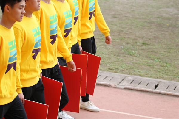 每年运动会开幕式,团体操是最受期待,最受瞩目的环节。本届团体操比赛,各系将新中国成立70周年主题融入团体操编排,通过国旗、红飘带、五角星、向日葵、体操球等元素融入,呈现了一场别样的主题展示。音乐系的团体操《天耀中华》,有演唱有舞蹈有打击乐,场面宏大,元素丰富,不仅有给新中国成立70周年的生日祝福,也展现了“不忘初心、牢记使命”的责任担当。舞蹈系手持五角星闪闪发亮,由中专和大专学生配合的技能展示,体现了浙艺精神代代相传,一颗红心向党走,少年有梦在远方。戏剧系通过七色各不相同的服装,大大的气球,拼出“梦”“艺”“70”等字样,将浙艺校歌《梦想开始的地方》和《我和我的祖国》结合在一起,寓意艺术融入大时代。美术系、影视技术系、文化管理系均进行了精彩展示。