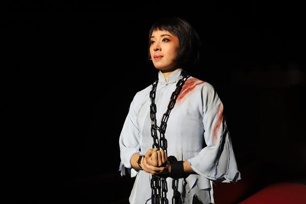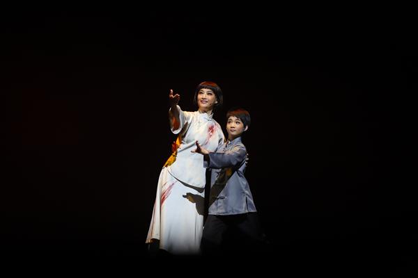 越剧《忠魂曲·记得当年清水塘》《毛泽东与杨开慧·风凄凄雁声哀》分别由钱丽文、缪海洁老师带领18级、16级越剧班学生演绎,艺术地再现了杨开慧在狱中对儿子毛岸英的深深嘱托和临刑前视死如归的忠贞之志,场面悲壮感人。
