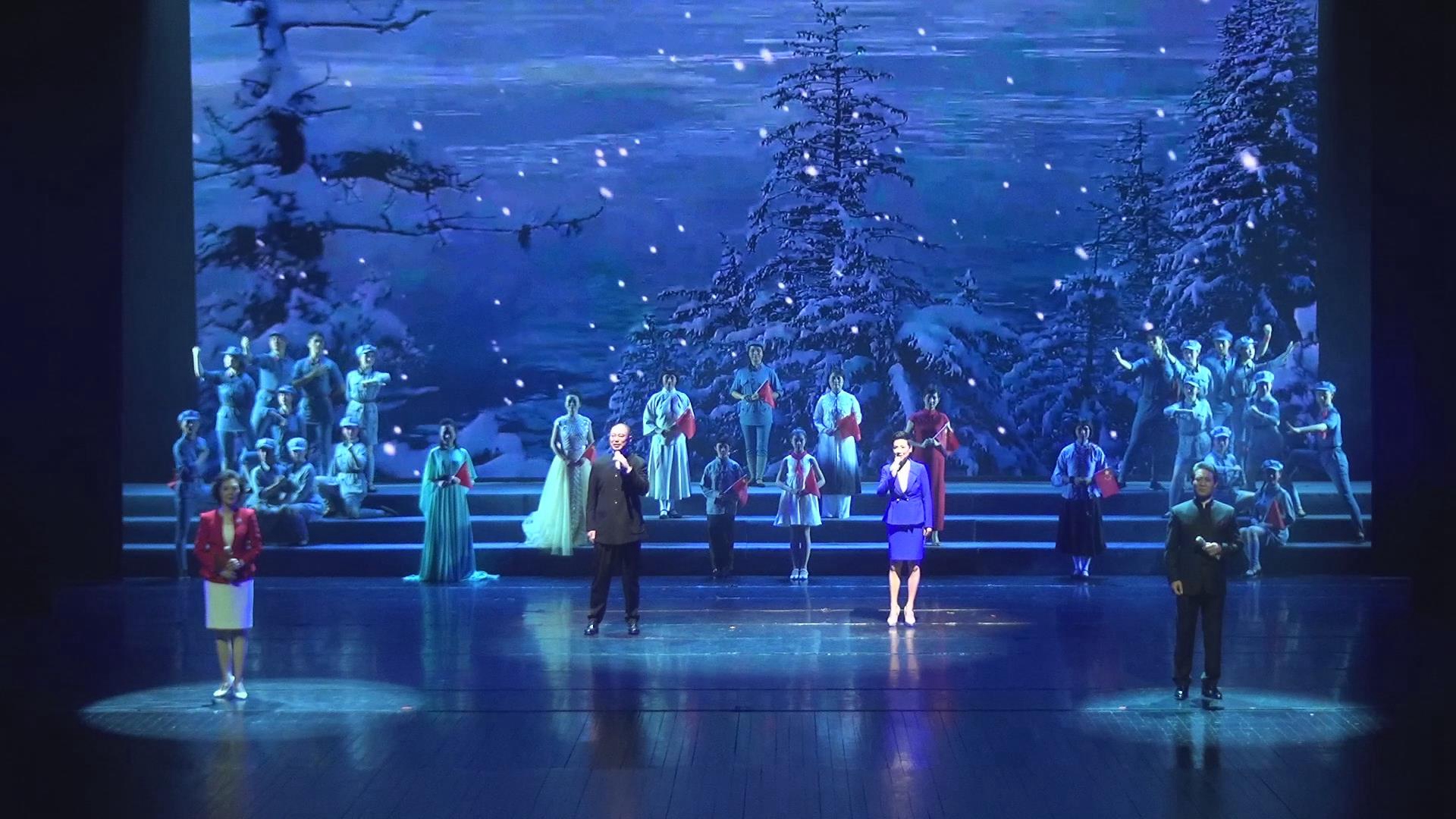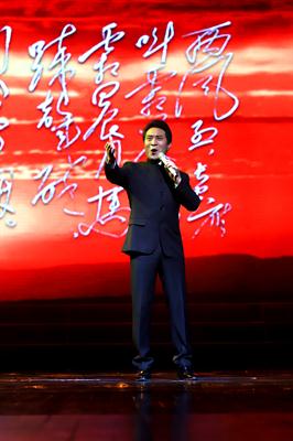 “东方红,太阳升,中国出了个毛泽东”,现场响起熟悉的旋律,特邀主持人刘忠虎、宋迎秋开场讲述毛泽东带领中国人民取得中国革命和建设的伟大胜利、建立新中国的丰功伟绩。