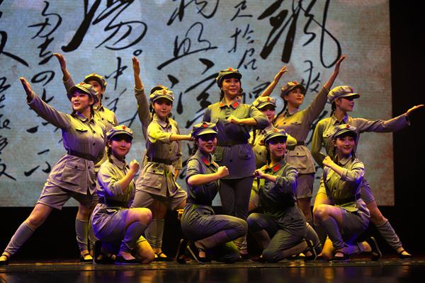 诗歌唱诵《忆秦娥·娄山关》由刘忠虎朗诵、杨晓浤演唱,诵唱出“雄关漫道真如铁,而今迈步从头越”的豪迈气势。越歌《七律·长征》由周伟君和16越剧男班学生表演,唱腔高亢,旋律激昂,气吞山河,充满革命英雄主义气概。