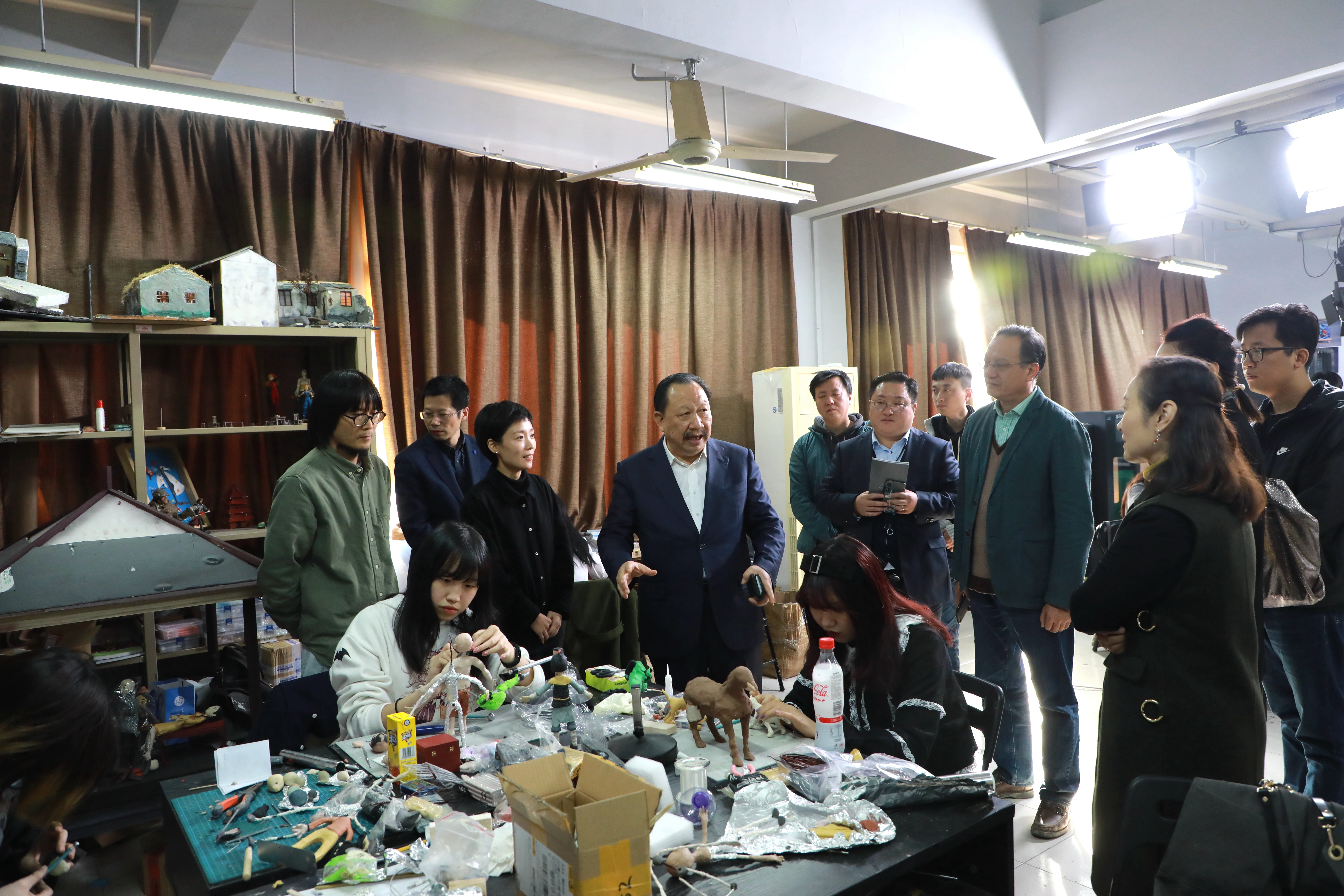 当天下午,吴建荣一行还实地参观了学校戏剧系、音乐系、舞蹈系、美术系、文化管理系,并随堂观摩了越剧基训、影视形体、舞蹈表演、艺术设计、动漫设计、文物修复等课程。