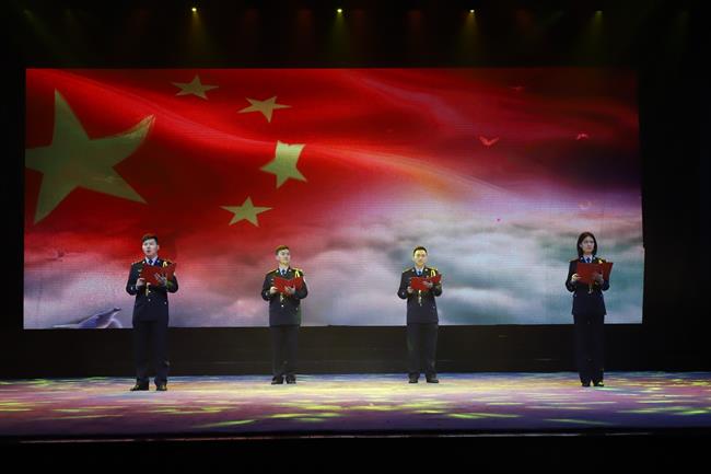 滨江公安分局干警分别带来了舞蹈《我和我的祖国》和诗朗诵《藏蓝的青春 我们的使命》。这一群身着藏蓝色制服的新青年,肩负着使命,奋战在基层,守护着安静祥和的社会,也为每一个文化的传承者保驾护航。“这是我们的使命,也是我们的责任。”他们说。