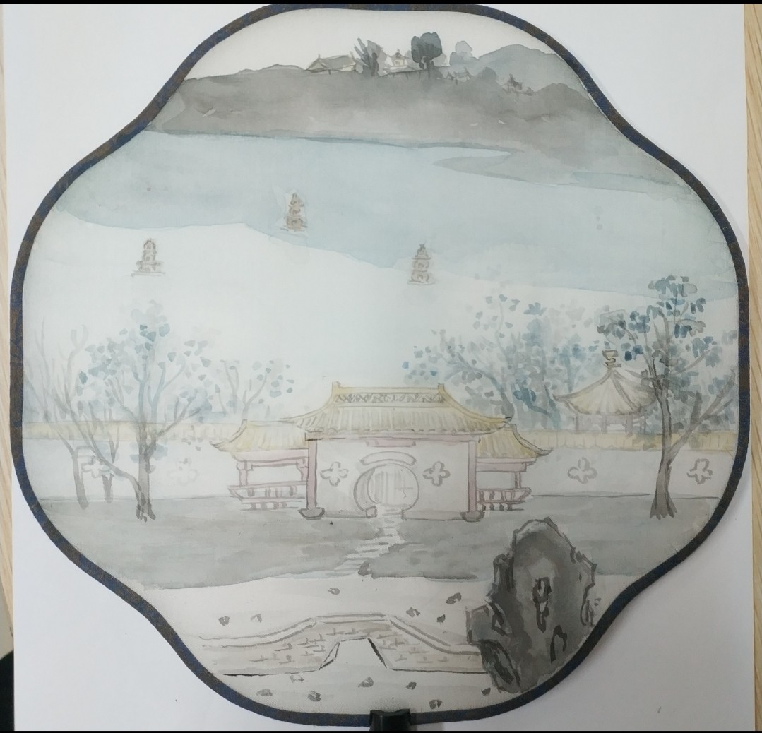 我们对《西湖十二景》中西湖十二景手绘绢扇的创作思路来源于西湖实景和南宋院体书画。