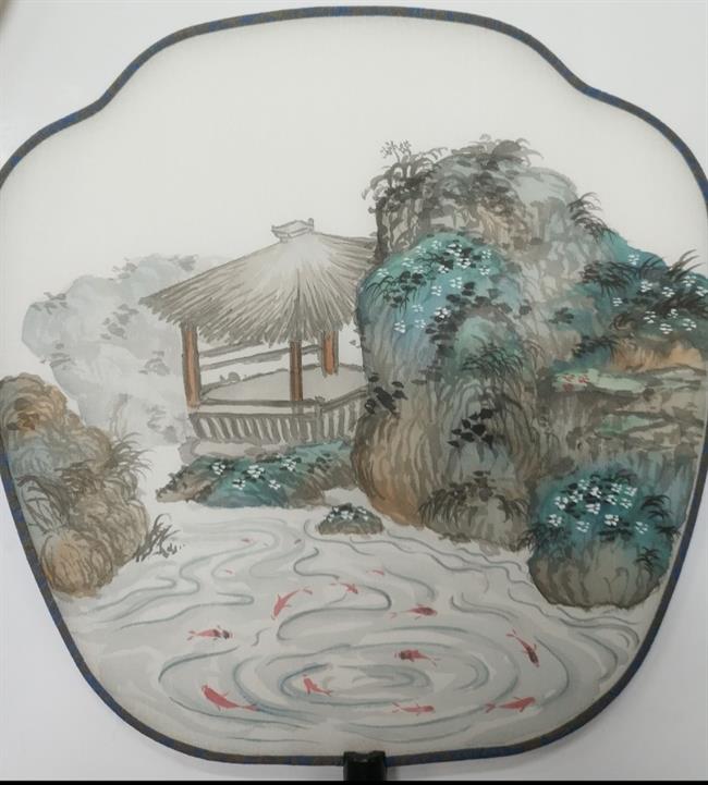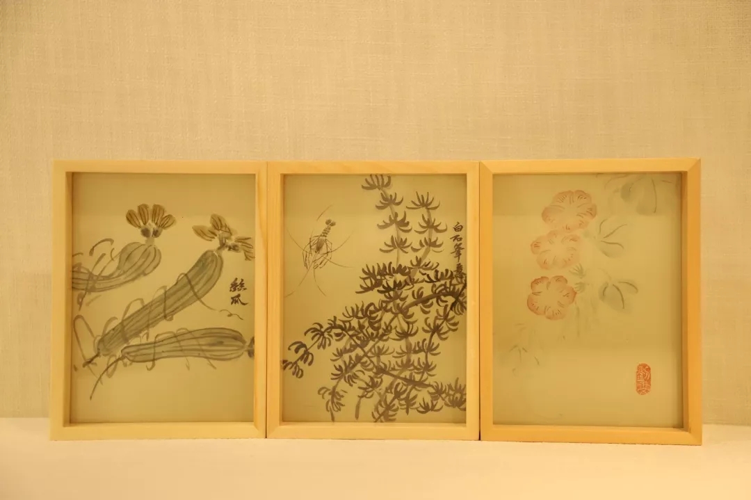 我们把人文景观作为切入点,在绢上绘制以山水一角、花鸟神态和最贴近人文生活的蔬菜瓜果。绘画完成后,我们运用绢丝装裱技艺,全面展示绘画对象的细节,体现了我们对杭州游观品味四体合一的理解。