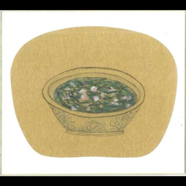 自古以来,无数文化英杰以钱塘、杭州、临安为根基各逐风流,无数文化瑰宝耀眼夺目,而南宋院体书画也是杭州特有的艺术特色,所以关于“杭风钱潮”的主题作品,我们选用最具杭州地域文化特色的书画团扇和册页形式,融合“杭州游”和“杭州食”两大文化元素,将传统书画与现代审美相结合。