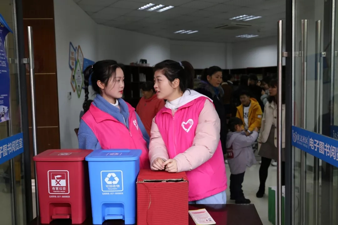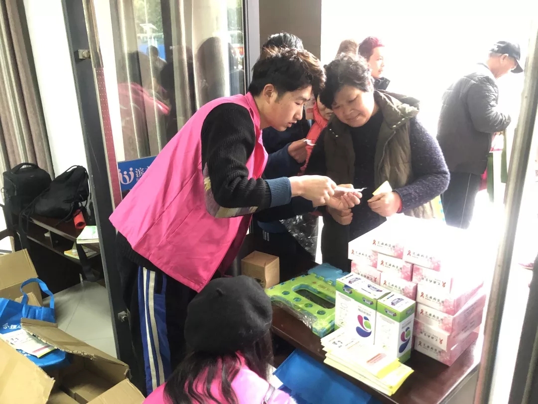 校团委组织校学生会志愿者工作部与校青春健康同伴社深入滨文社区,协助宣传垃圾分类工作,现场指导居民分清垃圾种类并发放纸巾、水杯等生活用品。青春健康同伴社的社员们也在现场设点,宣传讲解艾滋病防控有关知识。