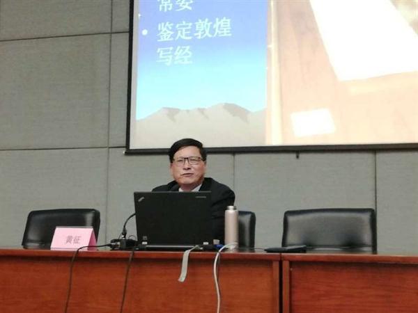 讲座伊始,黄征通过“敦者,大也;煌者,盛也”引出“敦煌”一词的含义,并从文化渊源与研究专家方面讲述了敦煌与浙江的关系——在地理位置上敦煌与浙江虽然相距遥远,但文化精神息息相通,浙江有着深厚的敦煌研究传统,涌现出罗振玉、王国维、姜亮夫、常书鸿、夏鼐、蒋礼鸿等享誉全国的敦煌学研究专家。