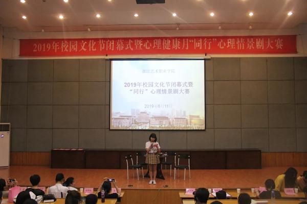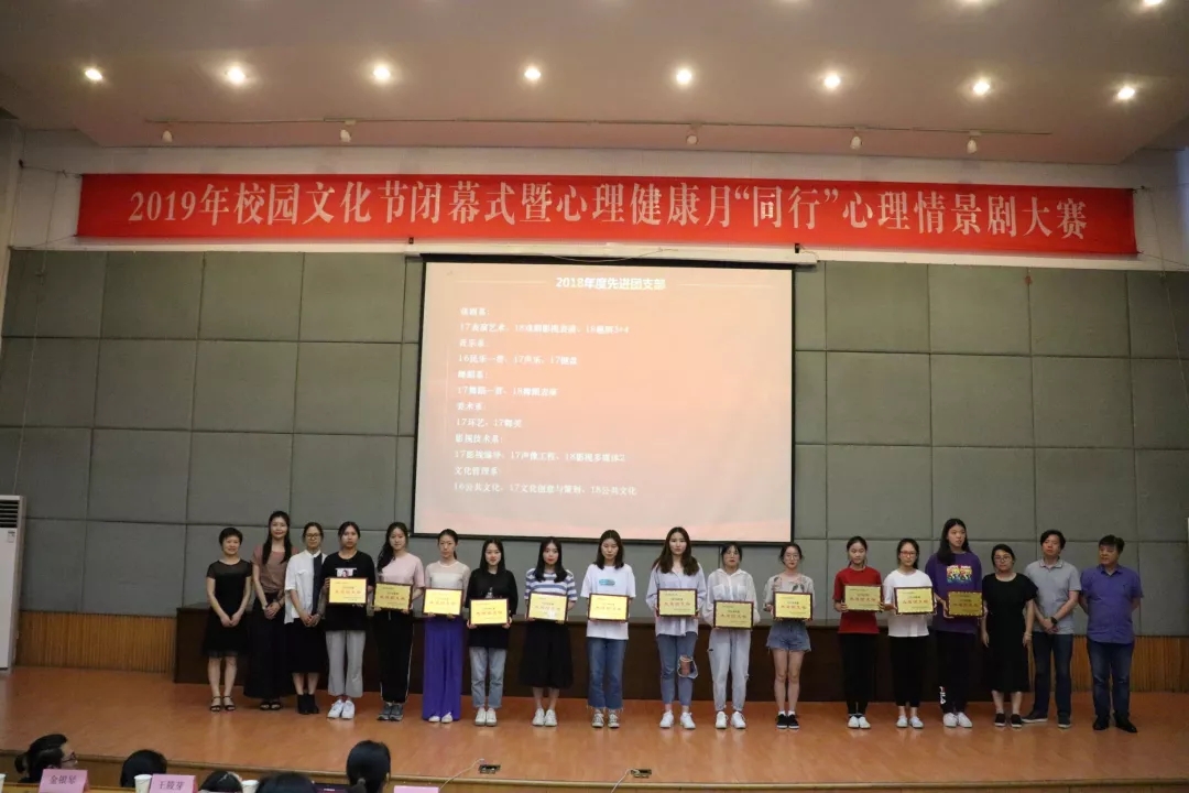 马向东代表校党委致闭幕词,对校园文化节的成功举办表示热烈的祝贺,并为心理情景剧获奖团队颁奖。戏剧系《同学会》获得一等奖;文化管理系《十八岁的礼物》和影视技术系《友谊·同行》获得二等奖;美术系《与你同行》、音乐系《那些花儿》、舞蹈系《余光未及之处》获得三等奖。