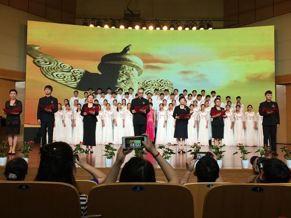 歌咏展示环节,各合唱团充分展示了各系部特色。《光荣啊,中国共青团》由学校青年教工代表合唱团演唱,青春靓丽,挥动的向日葵象征着青春心向党;戏剧系合唱团发挥舞台剧演出优势,朗诵和京歌《卜算子·咏梅》别具特色,不忘初心,牢记使命主题结合戏剧系戏剧影视表演专业和和戏曲专业特色,展现师生风采。“借助这样的平台,对自己的使命和担当有一种更清晰和明确的认识。”戏剧系副教授那刚说。