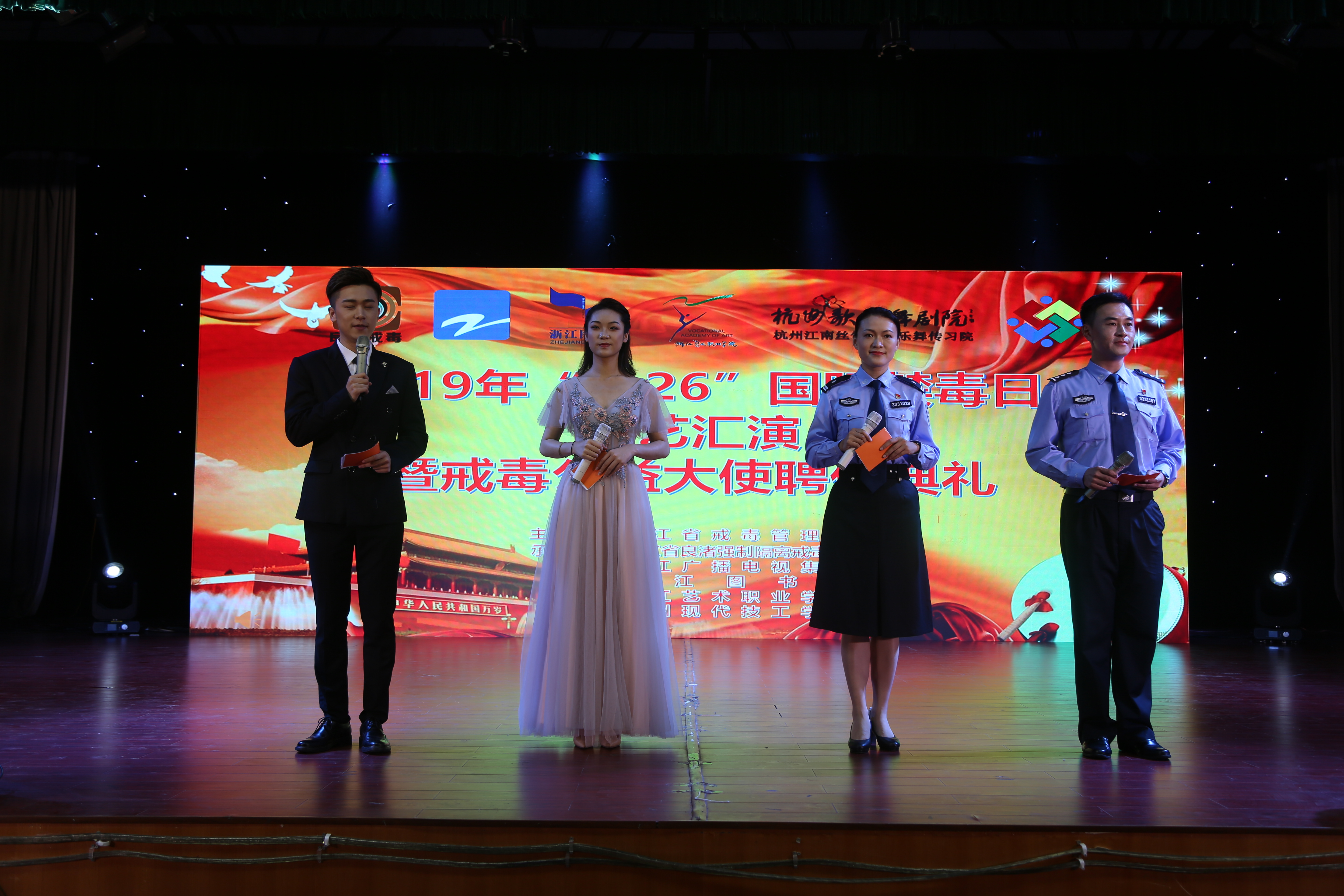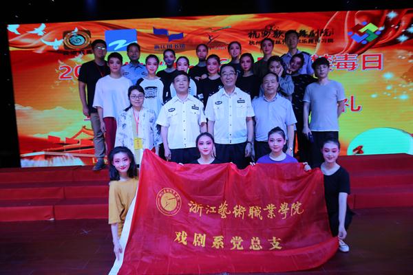 禁毒宣传文艺汇演上,戏剧系学生与良渚所警官、浙江电视台民生休闲频道主持人共同担任主持,还表演了经典越剧曲目《白蛇传·断桥》、《红楼梦·葬花》,熟悉的旋律、细腻婉转的唱腔和到位的身段,展现了中华戏曲文化、名著经典的强大魅力,给戒毒人员提振了精神,演出高潮迭起,掌声不断。去年,戏剧系与良渚强制隔离戒毒所已签订“初阳计划”文化共建,并举行实践教育基地授牌仪式,定期赴戒毒所开展文艺演出,送文化服务基层,同时借戒毒所之力开展法制禁毒教育,帮助我校学生树立法律意识。