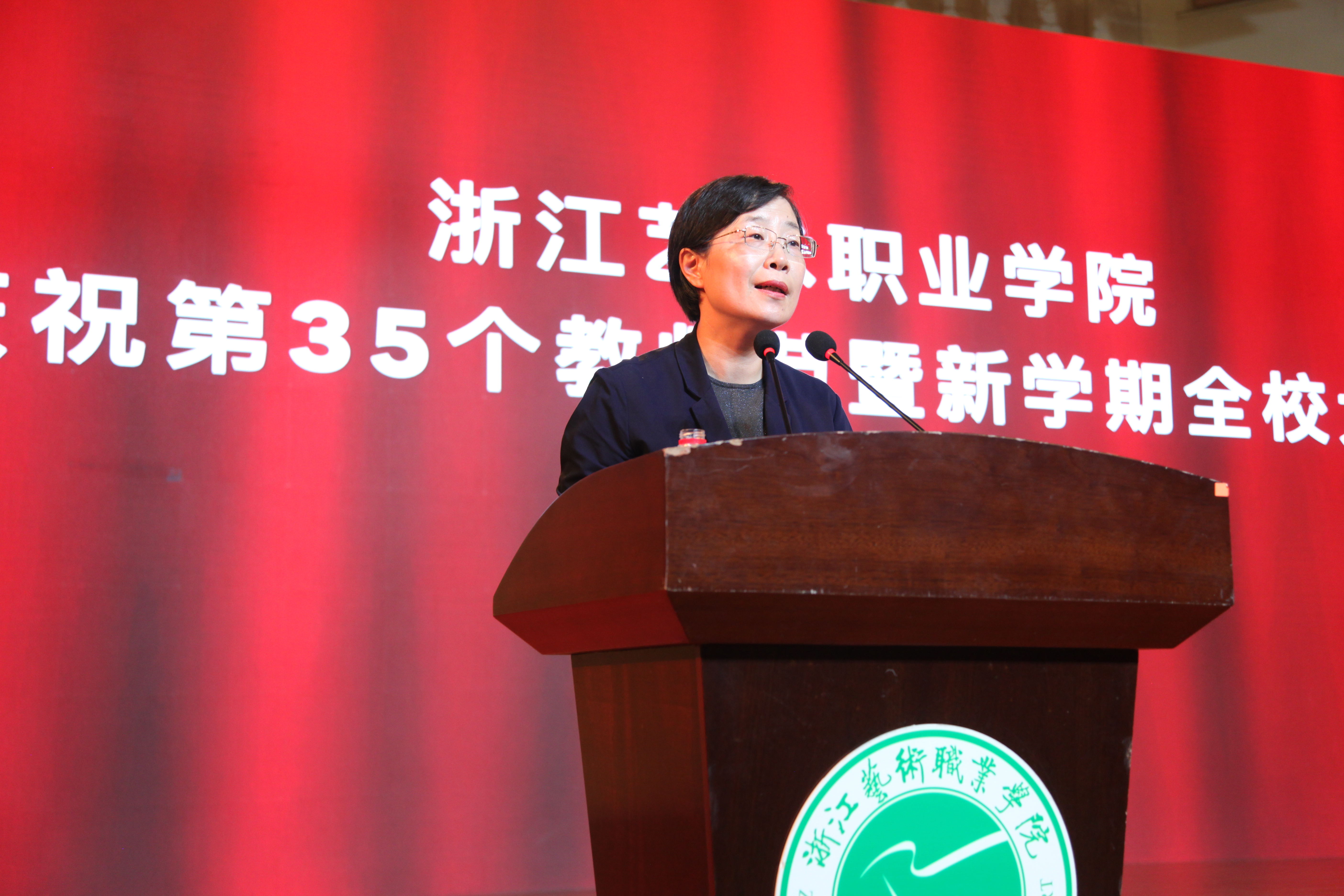 朱海闵结合即将开展的“不忘初心、牢记使命”主题教育,以“新时代”为关键词,对全体教职工提出了新期待新要求:要充分认识新时代职业教育发展的新机遇,准确把握新时代学校的历史使命和目标任务,大力培养新时代浙艺名师、能师和优秀教师团队。她强调,学校要完善“双师型”队伍建设机制,打造素质卓越的教师团队;健全师德养成长效机制,打造作风优良的教师团队;落实尊师重教的政策措施,打造幸福和谐的教师团队。朱海闵最后表示,教育事业崇高而伟大,教师职业光荣而神圣!做老师要执着于教书育人,有热爱教育的定力、淡泊名利的坚守。希望大家牢记习总书记嘱托,以高度的责任感和使命感,恪尽职守、努力工作,为艺术教育的繁荣发展、为学校的光明前景不懈奋斗,砥砺前行。