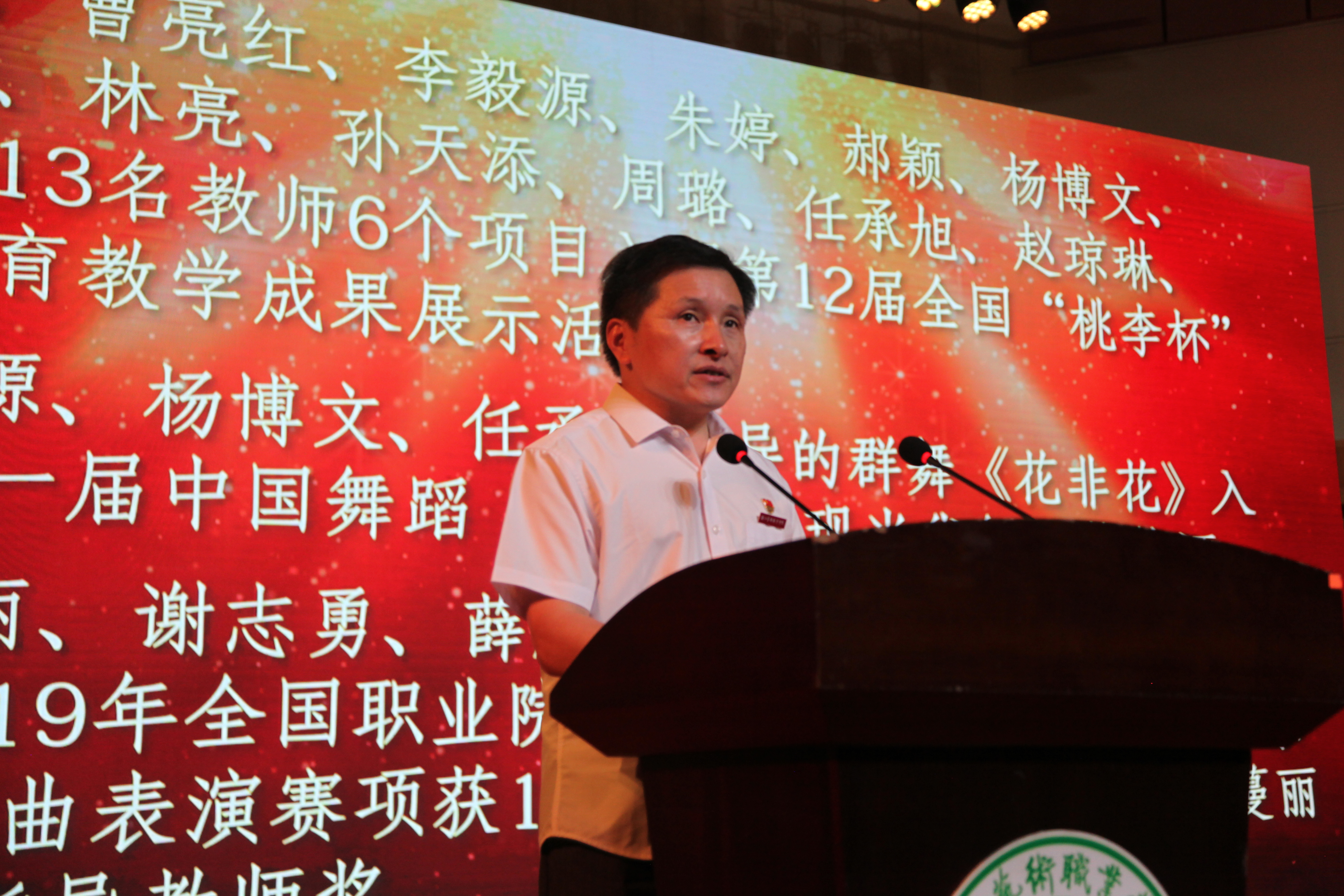 党委副书记、院长黄杭娟讲话。她向全体教职员工致以节日问候,祝贺获得表彰奖励的的先进集体和优秀个人,对2019年上半年学校工作进行了回顾,下半年主要工作进行了布置。