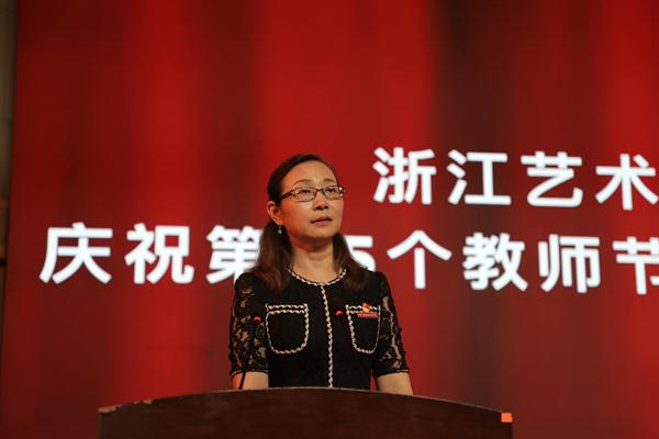校党委书记朱海闵讲话,代表校党委、行政向全体教职员工表示节日祝贺,向为人师表、潜心育人的各位老师致以崇高敬意。她指出,梳理历年来教师节的主题,不管时代如何变迁、社会如何进步,总离不开尊师重教、弘扬师德、立德树人、提升地位等。今年主题是“庆祝新中国七十华诞,弘扬新时代尊师风尚”,新时代必将赋予教师新的使命和任务。
