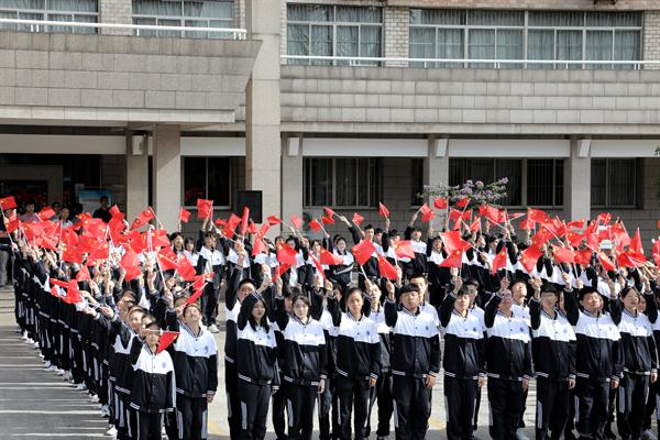 当前,正值新学年新生报到期间,为激发新生的爱国情怀,9月19日,在新学期举行第一次升旗仪式之际,组织拍摄了青春快闪《我和我的祖国》,用歌声礼赞新时代。中专、高职新生代表和学校党员教师400余人以行动擦亮初心,告白祖国。快闪活动的组织、策划、演出、拍摄、后期制作等,全部由学校师生完成,充分展现了学校形象和学子的朝气蓬勃,教育引导广大青年学生扣好人生第一粒扣子,立志听党话跟党走;教育引导全校党员干部坚守初心、勇担使命,始终保持斗争精神,知重负重、迎难而上。