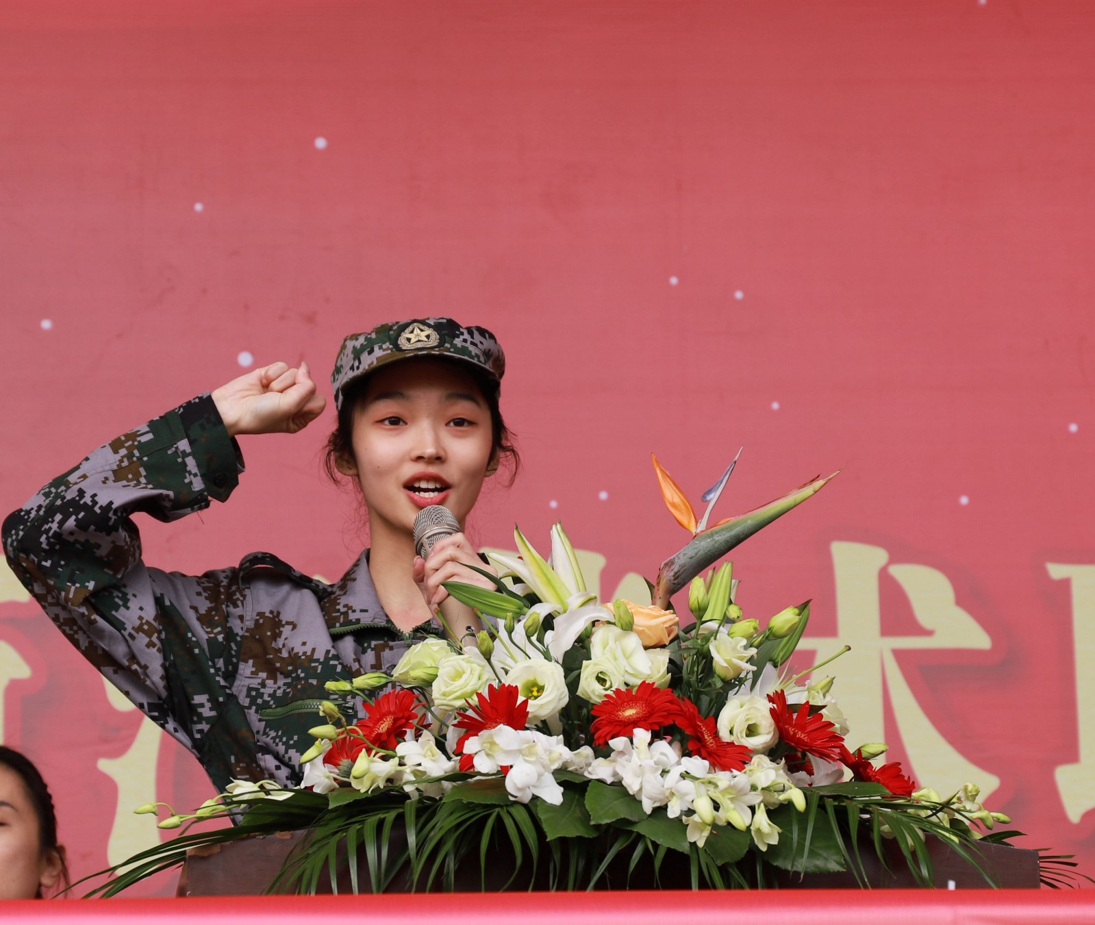 黄杭娟作讲话。她代表学校党委对新同学的到来表示热烈欢迎,向承训部队表示衷心感谢。