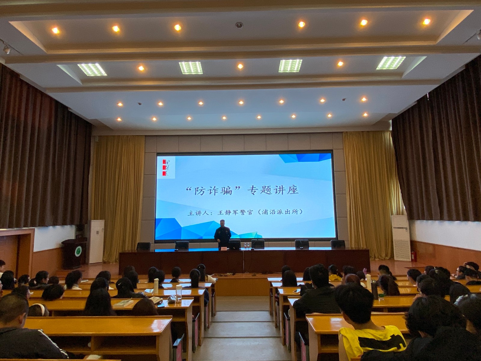 为加强电信网络诈骗防范宣传,净化校园环境,引导学生对身边的“骗局”树立防范意识,戏剧系特邀滨江公安分局浦沿派出所警官王静军作防诈骗专题讲座。王静军表示,大学生由于缺乏社会经验,难辨诈骗信息真假,已经成为诈骗受害者的主要群体。王静军介绍了网络交友、网络刷单、网络贷三种诈骗形式,用鲜活的案例提醒同学们谨防各类诈骗手段。他告诉同学们如果遭遇了小额诈骗,可在微信小程序中搜索“腾讯110”进行举报。