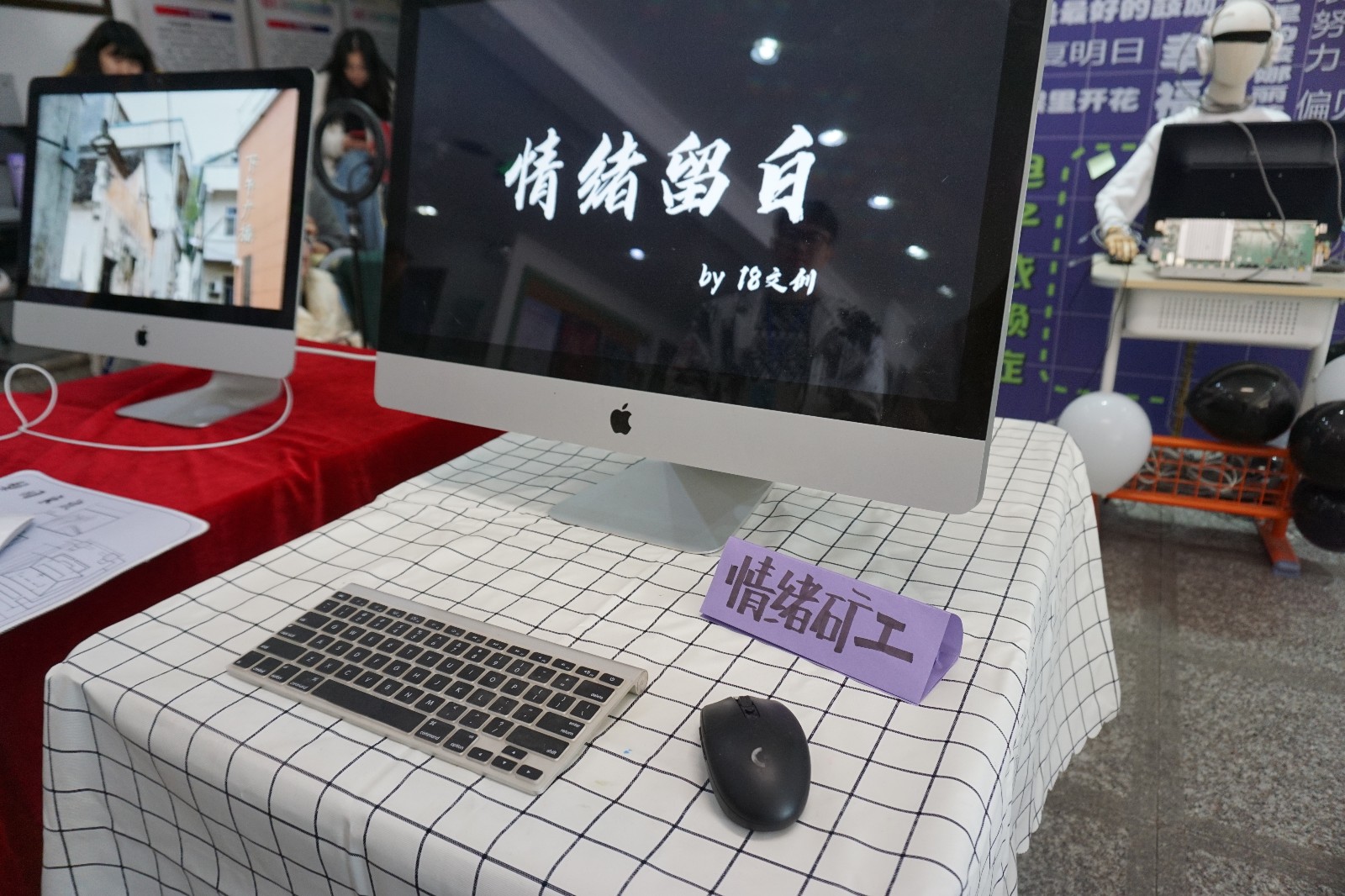 在展览中,同学们用强烈的色彩搭配对一面墙进行了布置,表现出了现在年轻人的焦虑来源。并用负面语言和正面语音的对比衬托,凸显解压主题。展览中还有同学们亲手写的解压便利贴,让整场展妙趣横生。在另一面墙上,同学们展示了当代青少年情绪压力现状和结构,梳理出焦虑产生的八个原因,从而让同学们更好地认识和理解焦虑,从而对症下药缓解焦虑,达到解压的目的。