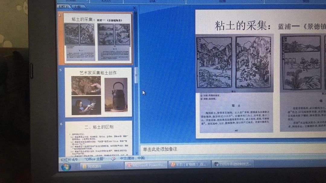 民族传统技艺专业核心课程有青瓷烧造技艺、石雕技艺、水印木刻技艺、汉代器艺、传统印染等。因课程大多需要操作实践,教研室老师们就采用理论联系实践,PPT教学与线下操作直播同步进行的方式进行线上教学,让学生能融会贯通,一目了然。青瓷烧制技艺课程教师通过PPT讲解陶瓷基础——材料及成型方式,通过视频演示器皿制作及烧成(弦纹炉的制作及烧成)让学生更直观地了解青瓷烧制的整个过程。