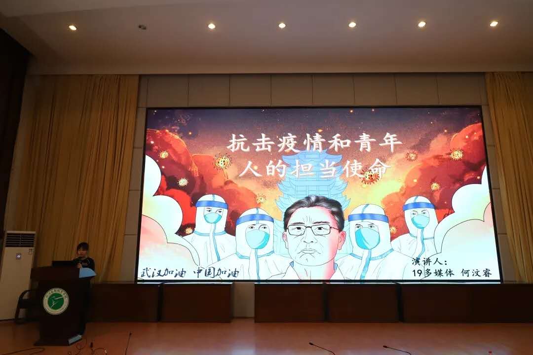 紧接着,影视技术系“抗击疫情和青年人的担当使命”主题微型党课比赛精彩上演,系部10名影视学子站到了台前,与在座的师生一同分享疫情期间身边的青春榜样。19影视多媒体(扩招班)的周智涵,从一张他与习近平总书记的合影讲述了他作为“王杰班”上等兵的军旅生活,用自身经历生动诠释了《硬核青年的硬核青春》。19影视编导班王瑜婷、19摄影摄像1班郭大展、19音像技术班桑英爽、19多媒体班冯季诚与师生们分享了新时代青年抗疫期间的鲜活事例,展现了新时代青年人的责任担当。19摄影摄像1班章紫晶、19多媒体(扩招班)冯小禹、19多媒体班何汶睿从自身疫情期间的公益服务、居家隔离等亲身经历,为大家展现了面对大考,“疫”往无前的青春力量。19摄影摄像1班樊柔驿、19影视编导班李华晨从《青春之担当 是毅不是疫》《矛盾论》的独特视角,带领师生们领略了战“疫”下别样的青春底色。经过激烈的角逐,硬核青年周智涵获得了本次微型党课比赛的一等奖。