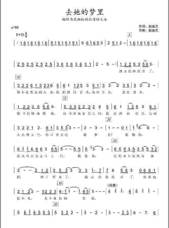 “漫山的春花开了,却不见赏花的人来,我把酒问青天,为何生命悲欢离合。”歌曲《去她的梦里》旨在抚慰抗疫英雄们的母亲,以英魂入梦的方式,慰藉所有不幸带来的难以平复的伤痛。作品融入了东北民歌《摇篮曲》,以“守护”为主题,将母亲与孩子无法割舍的爱,表现得淋漓尽致,更把亿万民众对英雄的敬仰融入其中。