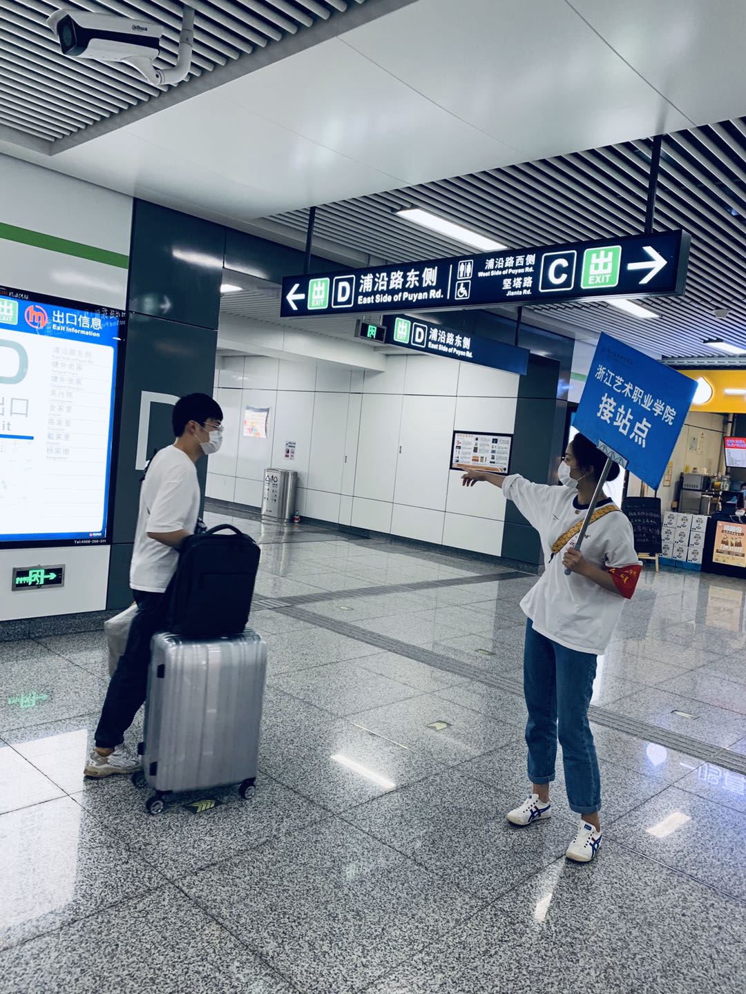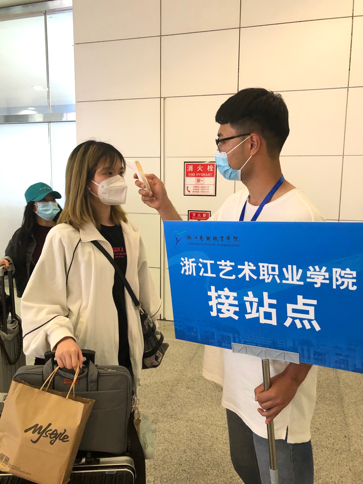美术系教师龚林峰,一天跑了4趟萧山机场,接了16名学生。他当天一早就到机场,最晚的一趟23点才到达,从早到晚守在那里,等着接自己的学生们“回家”。老师提前准备了额温枪、口罩、消毒液、接站牌、接站学生名单、今日校园签到码,并且提前一天添加了学生微信,早上给学生留言确定航班号及是否延误,接到学生后测温,看健康码,扫今日校园码签到,和学生坐校车一同回校。地铁还未接驳的车站的接站工作学校也没落下。
