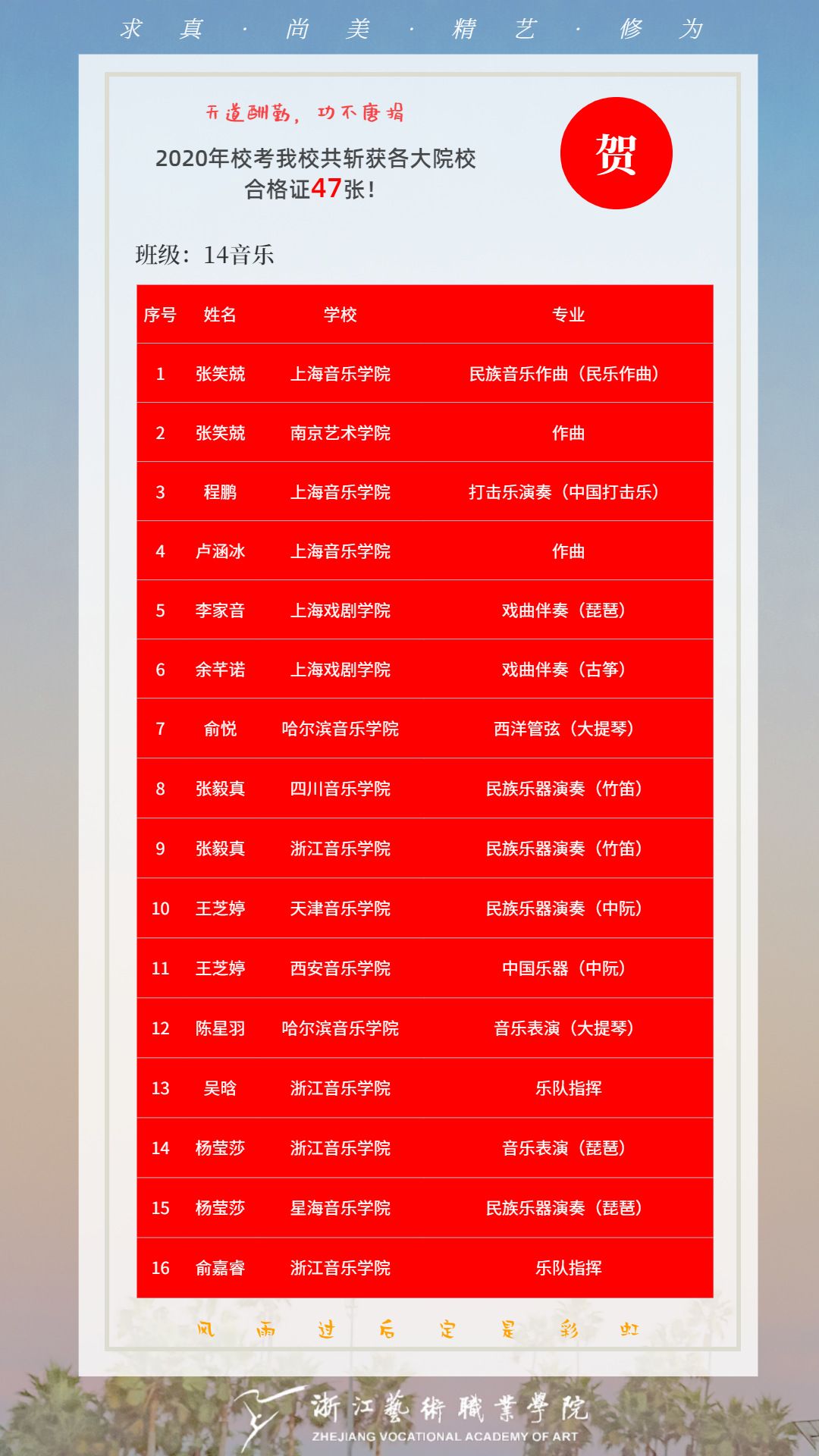 因为梦想,我们相聚在浙艺;因为梦想,我们在浙艺起飞。由于疫情,高考和艺考的推迟让我们不知所措,但经历过这一切的我们,也注定不平凡!相信在未来的道路上,总会能听到同学们传来的喜讯!也希望学弟学妹们在考学的道路上顺顺利利!