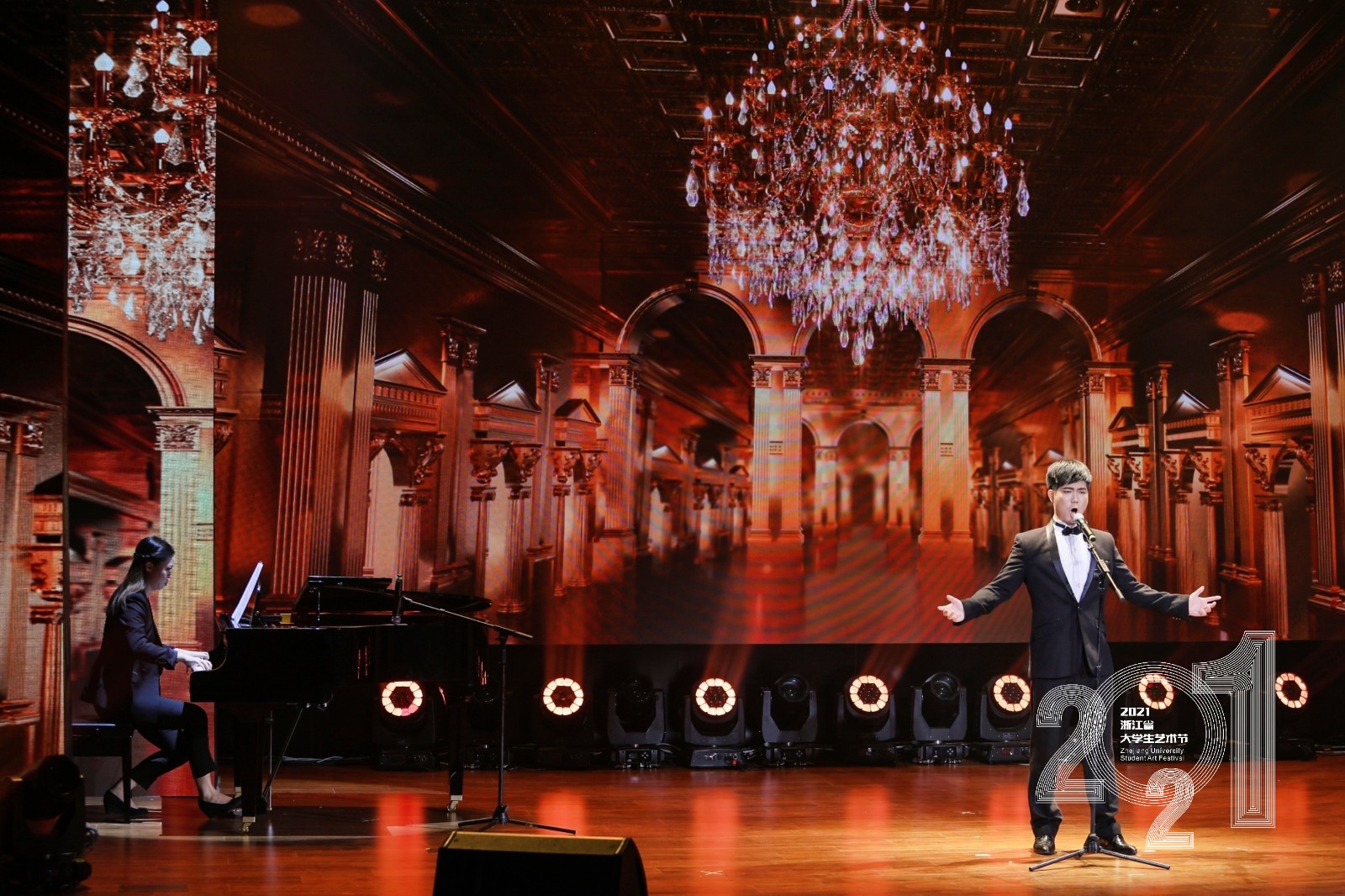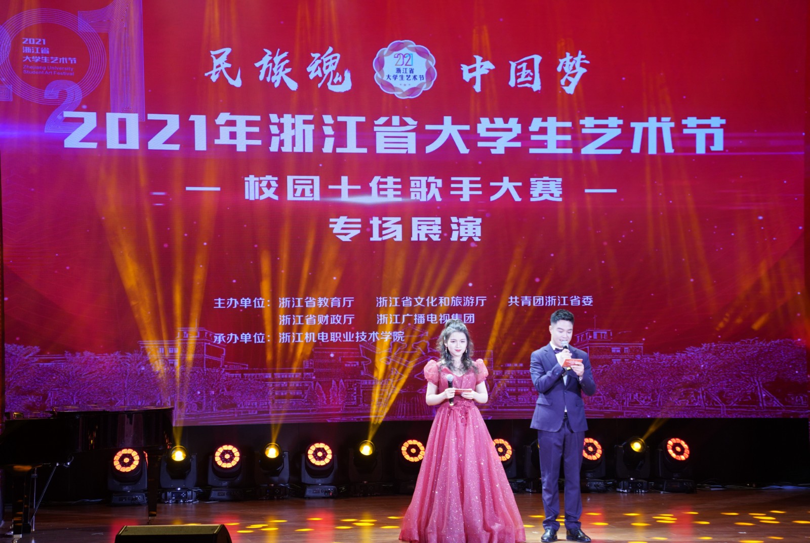 10月27日晚,由浙江省教育厅、浙江省文化和旅游厅、浙江省财政厅、共青团浙江省委、浙江广播电视集团主办的2021年浙江省大学生艺术节校园十佳歌手专场展演在浙江机电职业技术学院分赛场启幕。