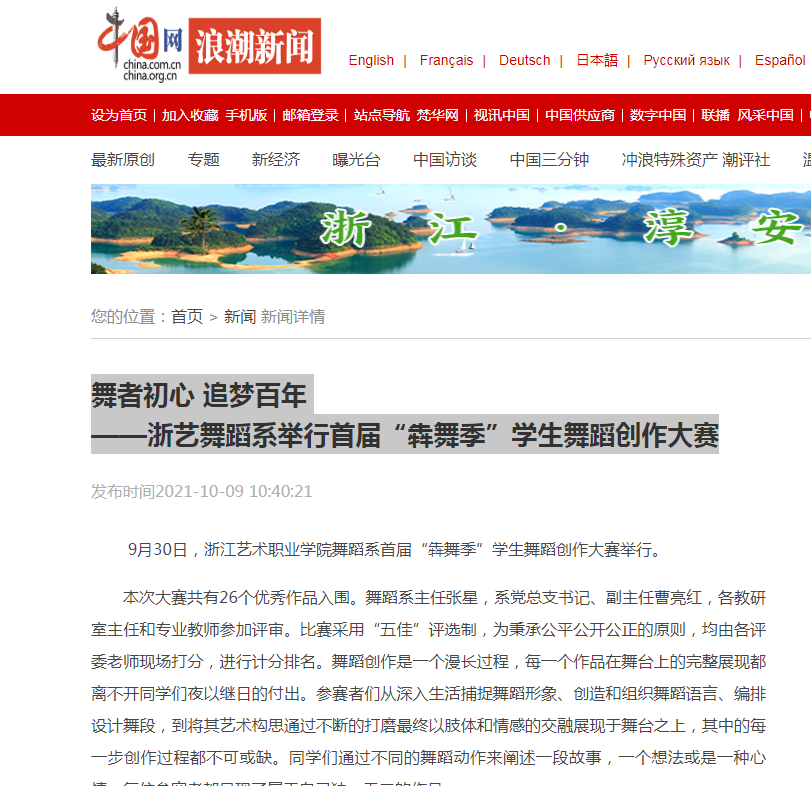 中国网:舞者初心 追梦百年 ——浙艺舞蹈系举行首届“犇舞季”学生舞蹈创作大赛