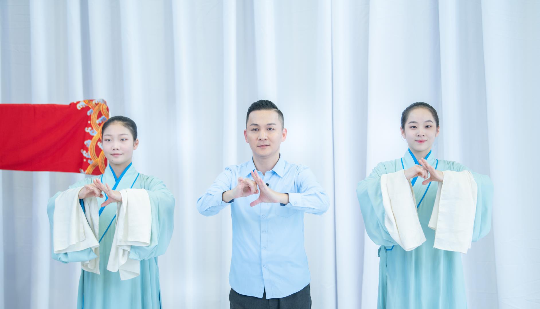 直播中,老师们用通俗易懂的语言对传统戏曲知识进行讲解,对“手、眼、身、法、步”的各项要领进行标准化示范,配合对现场学生动作的指正,准确到位,生动有趣。水袖的“形”之美、“意”之韵,折扇的细腻,戏曲把子功的飒爽,长绸的飘逸,使得观众们在评论区不停地感叹“一招一式都有范”“台上一分钟,台下十年功”。