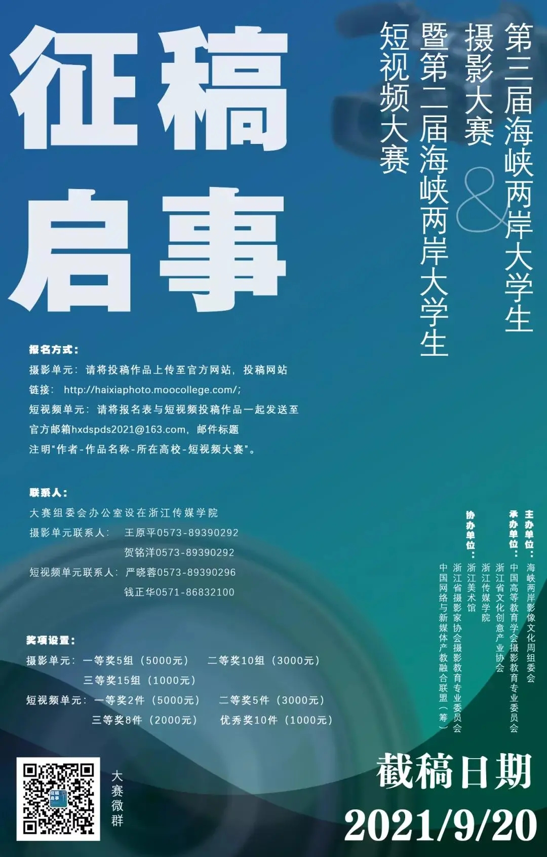 9月28日,由海峡两岸影像文化周组委会主办的“第三届海峡两岸大学生摄影大赛”在浙江传媒学院落幕。本次摄影单元主题为“远方”,大赛鼓励大学生基于历史和当下的视角,通过对社会文化、日常生活、人文与自然景观、个人经历的体验与观察,用影像塑造与表达自己心目中的“远方”。本次海峡两岸大学生摄影大赛共收到两岸145所高校的1181组参赛作品。经专家评审,共选出30组获奖作品,其中一等奖5件,二等奖10件,三等奖15件。