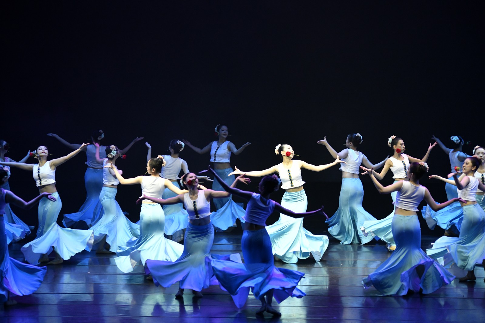 当晚,音乐系2017级歌舞一贯班、2019级歌舞大专班学生们带来了精彩纷呈的歌舞节目。舞蹈《盛开》,由2017级歌舞一贯班全体学生表演,她们用婀娜多姿的舞姿表现了一簇簇含羞的花朵,盛开于阡陌交错的旷野之上,在春日的阳光里盛开绚丽画面;舞蹈《女儿花》,用无声的舞姿表现了姑娘们银铃般的笑声回荡在水与山林之间的意境;2019级歌舞班的蒋泽赪演唱了歌曲《向往》,唱响了中国人民跟着共产党的心声;流行舞《沙漠之花》展现了神秘的恒河岸边,带着华贵面纱的美丽少女,舞动青春,热情似火的情形;歌曲《 Who Will Love Me As I Am 》选自音乐剧《附带的演出》,由郭尔睿、周宸好演绎了一对连体女孩痛苦的内心世界;2017级歌舞班的林子淳用富有感染力的嗓音借歌曲《普希金》,诠释了对美好生活的执着追求。