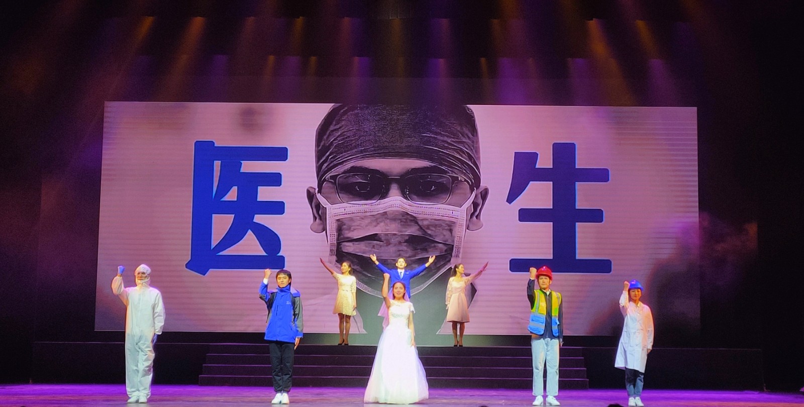 原创情景朗诵《最美逆行者》与原创歌曲《无畏》再现了疫情期间抗疫英雄无畏艰险,奔赴前线的精神。非遗情景表演《鼓乐•狮腾》,同学们化身成帅气的鼓手和威武的狮子,雄狮跳跃,人在翻舞,狮身迎风,呼呼有声,舞武相连,舞武相融。将非物质文化遗产——醒狮与鼓结合,给现场观众更佳的视觉与听觉体验。情景朗诵&合唱《英雄儿女》表达了对用生命捍卫祖国平安与繁荣的英雄的尊敬。