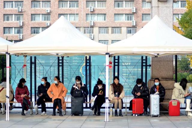 当天的考场虽然气氛有些紧张,但秩序井然。校园内,排队候考的考生或在候考室进行热身,或低头默记曲谱,或在一旁做深呼吸调整情绪。而在校外等候的家长则耐心等待。